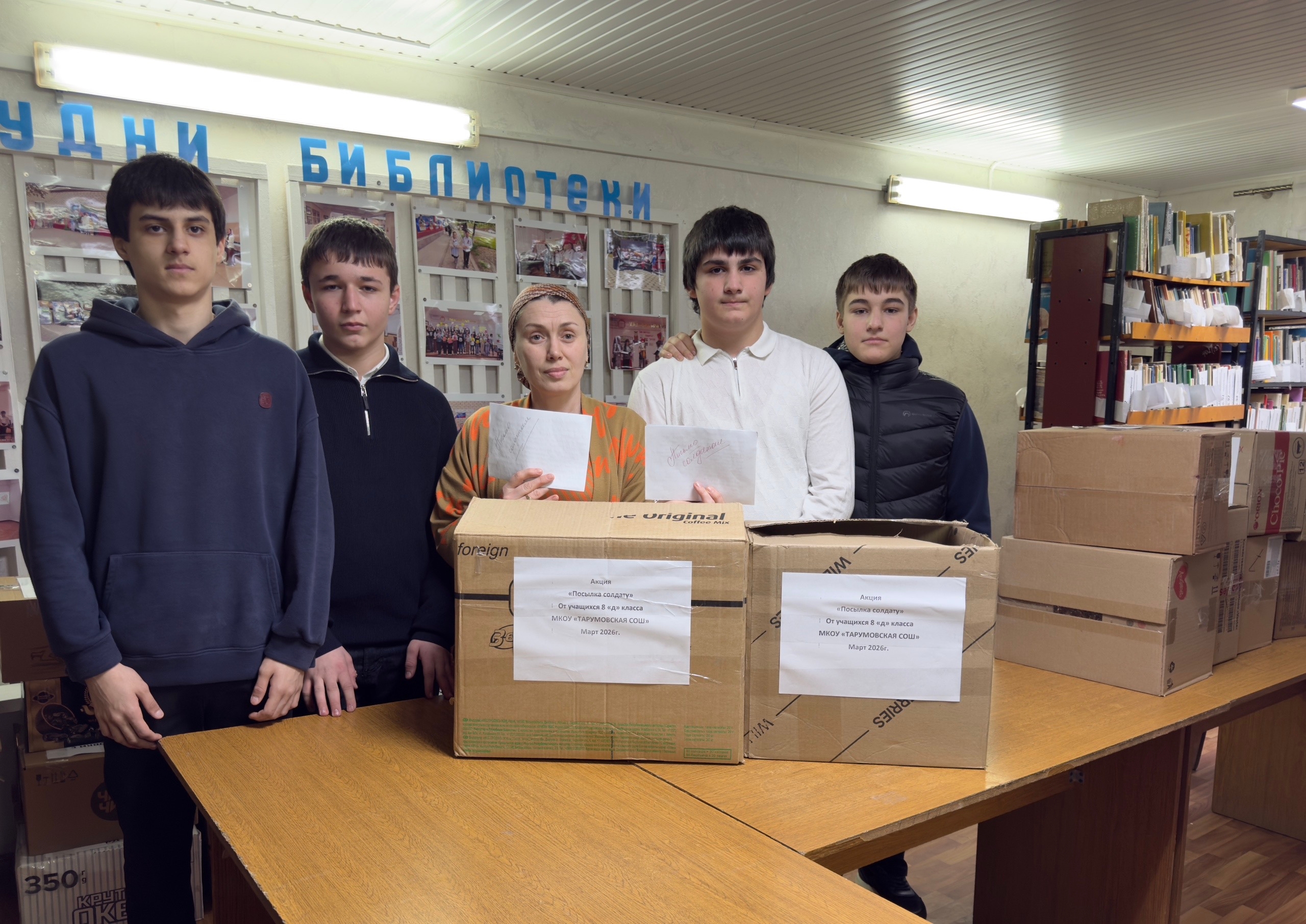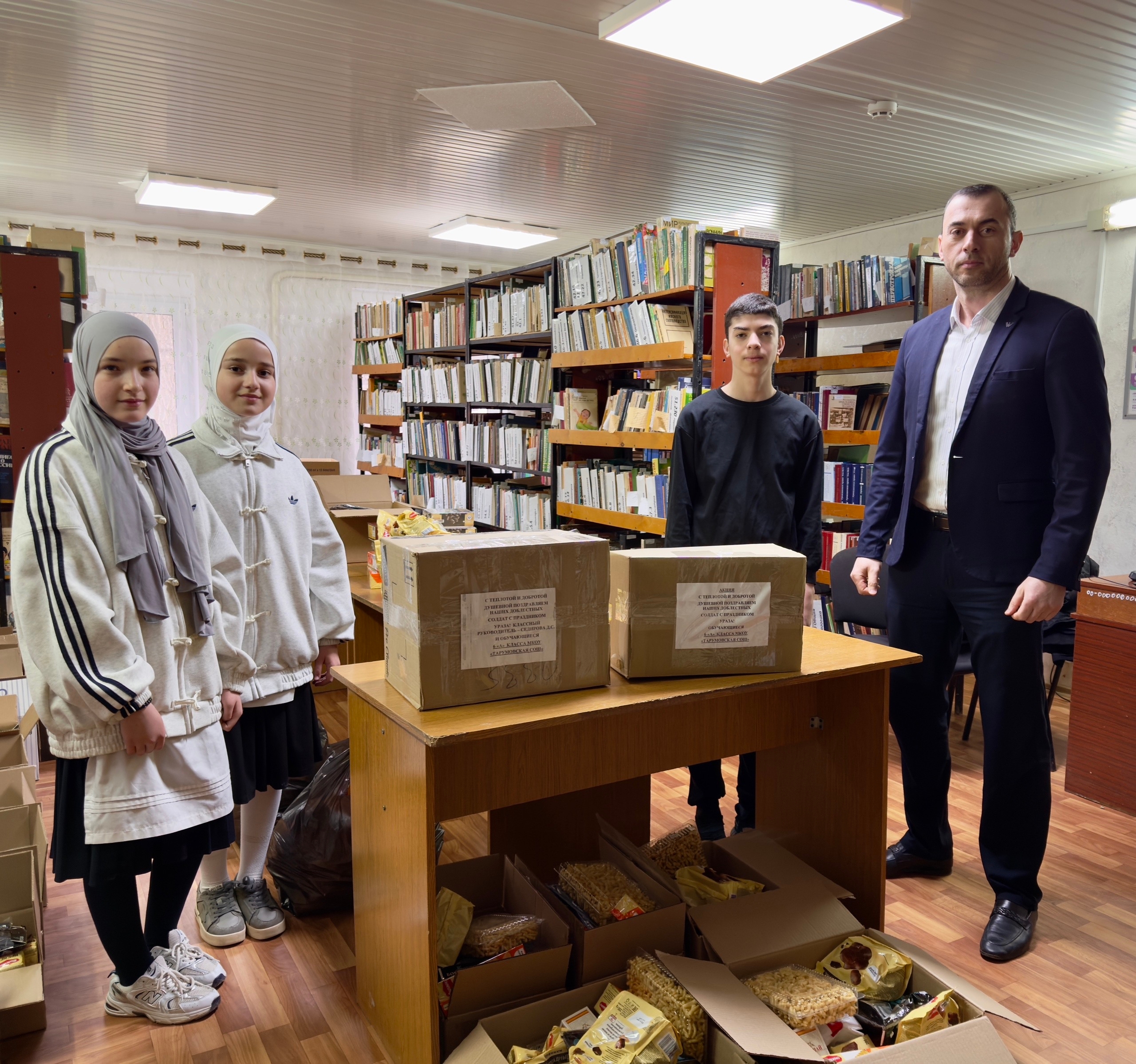 К сбору гуманитарной помощи активно подключились учащиеся Тарумовской средней школы. В акции приняли участие ученики 6 «А» класса под руководством классного руководителя Дианы Седировой, 8 «В» класса с классным руководителем Сакинат Гаджиевой и 8 «Д» класса под руководством Заиры Магомедовой. Личную инициативу проявил ученик 6 «Б» класса Шахбан Абдусаламов, также внесший свой вклад в формирование посылок.